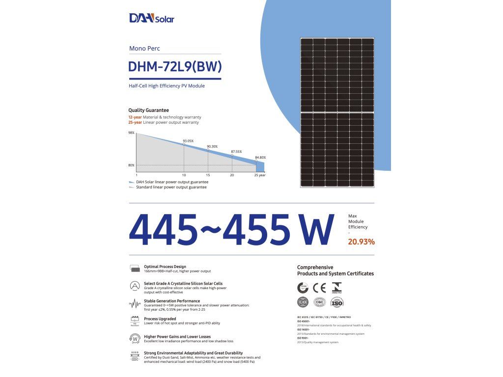 DAH Solar DHM-72L9 455 Wp – výkonný a spolehlivý panel pro moderní fotovoltaiku